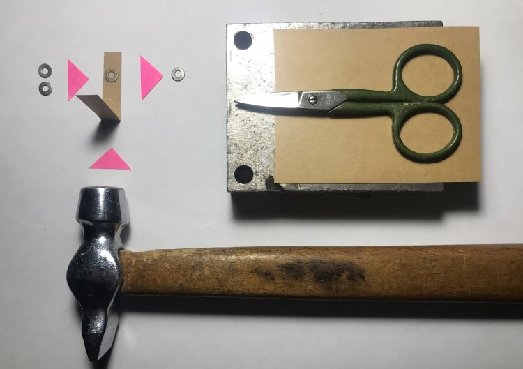 Перед выстукиванием, шайбы вкладываются в полоску картона для сохранения их цинкового антикоррозийного покрытия.