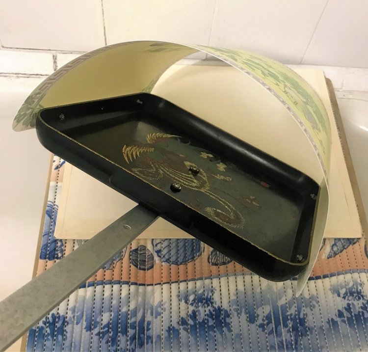 Нижней частью кормушки служит вышедший из моды, с поблекшим и полустёртым рисунком, чёрный монолитный поднос.