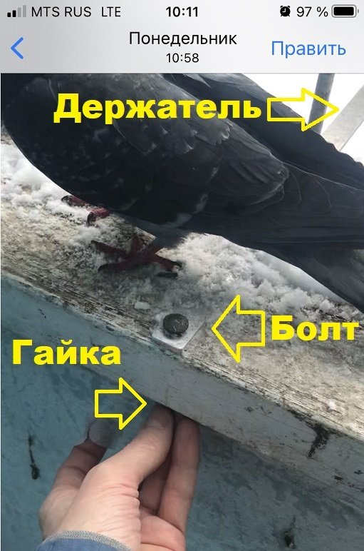5). К тому же страховочный тросик заметно мешает пожилым голубям с больными суставами пробираться в кормушку.