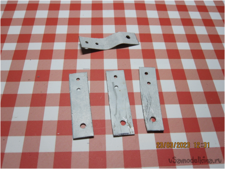 3. От куска жести отрезаем 4 полоски L-5 см , шириной 10-12 мм