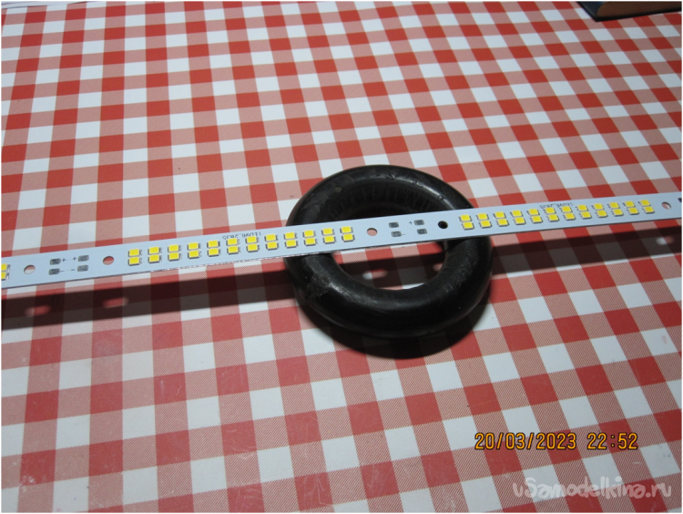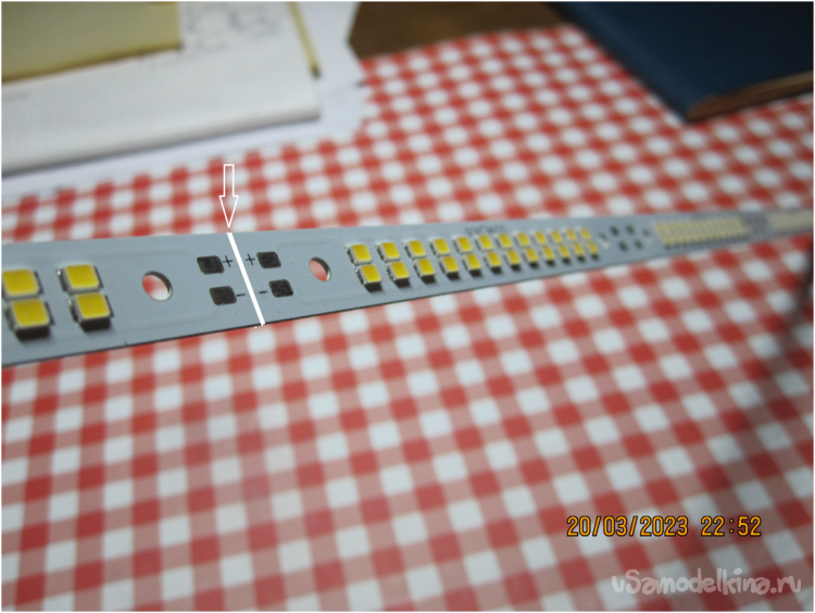 у меня золотистого цвета, отрезаем 4 отрезка по 15 см. Это будут охладители для светодиодных линеек.