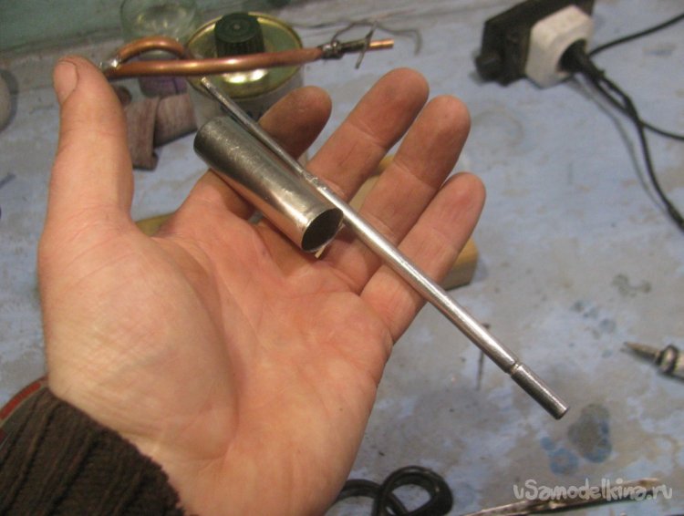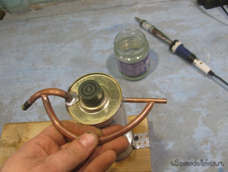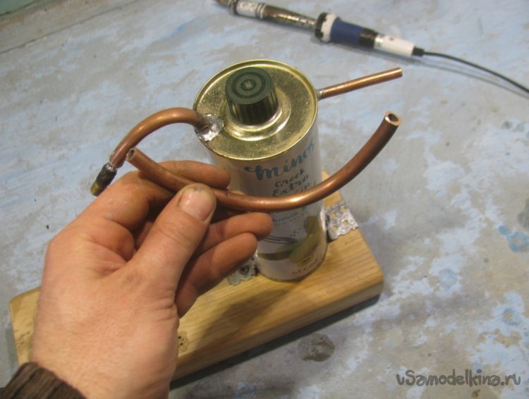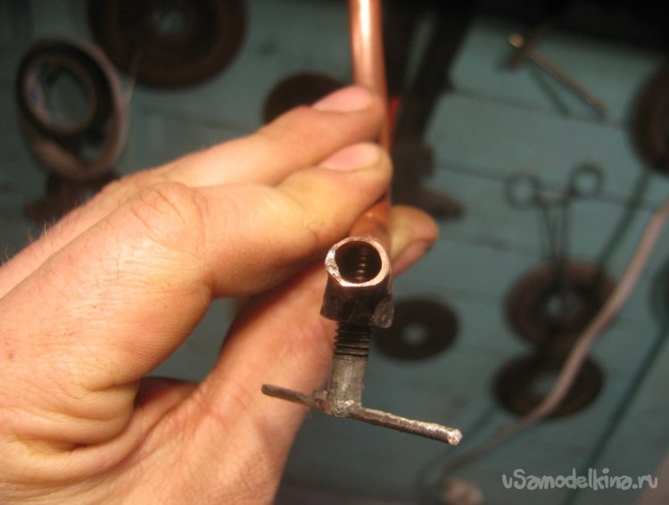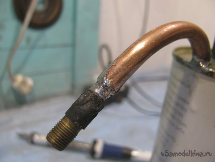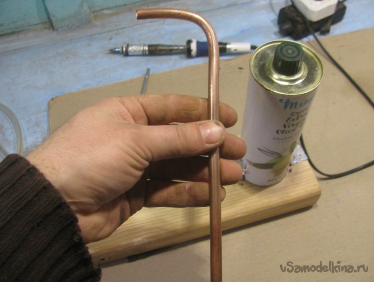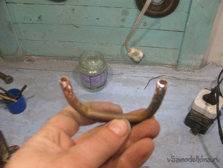 Сгибаем трубку для удобства и припаиваем на свое место.