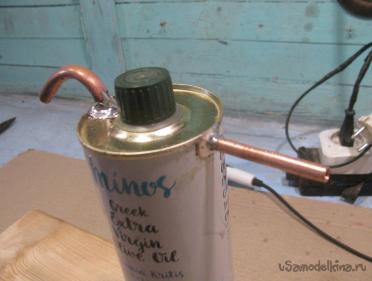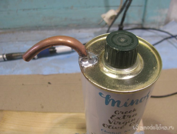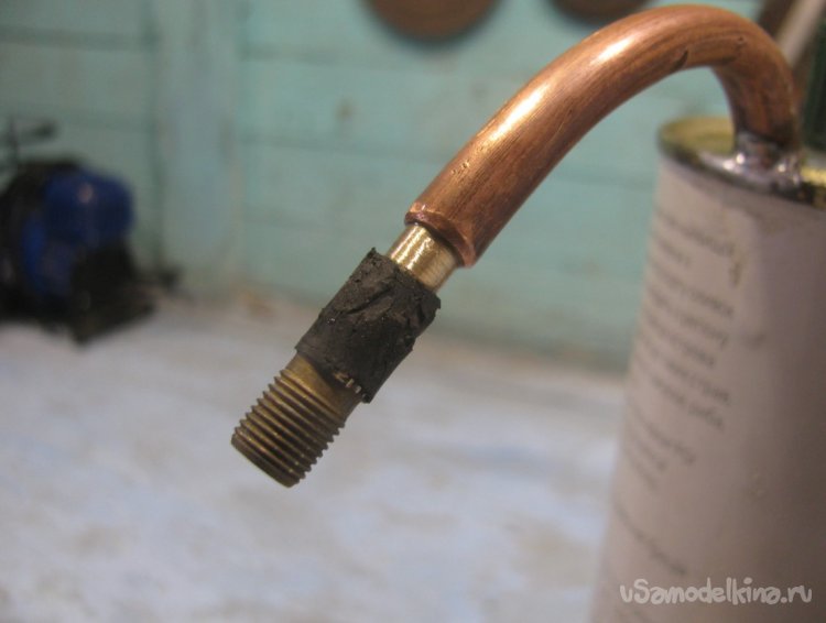 Также припаиваем выходную трубку в самой верхней части газогенератора.