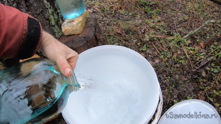 В этом году решил опробовать трубки их ПВХ вместо бузины. Отверстия нужно теперь сверлить меньшего диаметра, я боялся, что сока будет меньше. А нет, сок идет также как и из трубочек большого диаметра.
