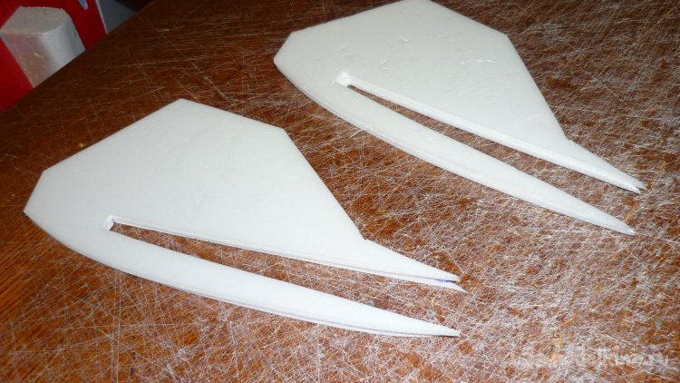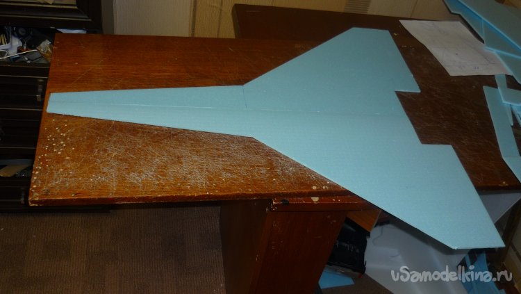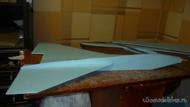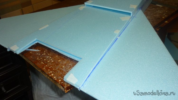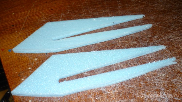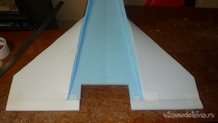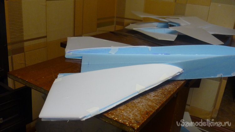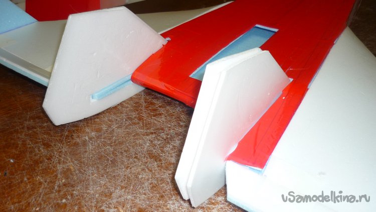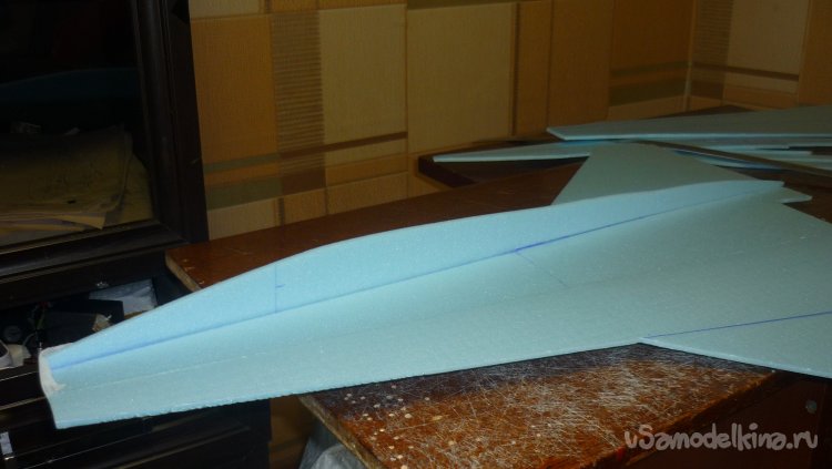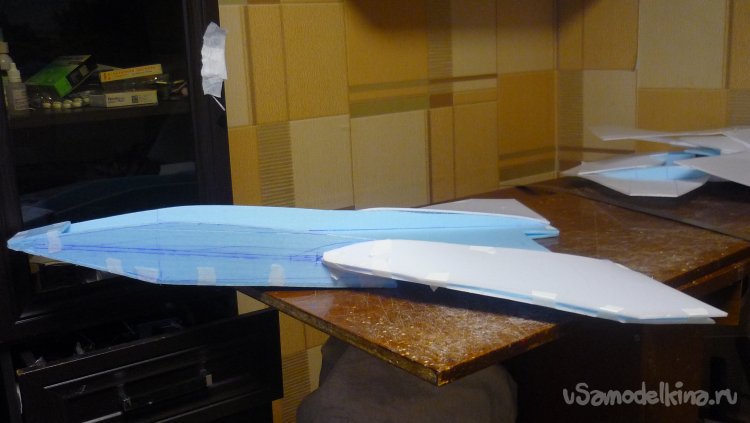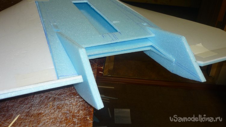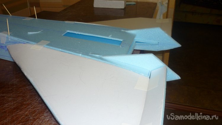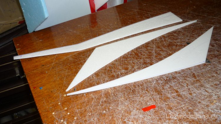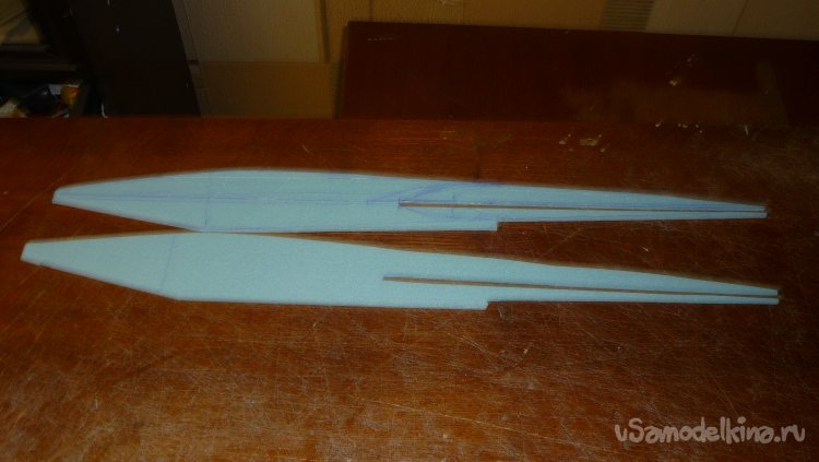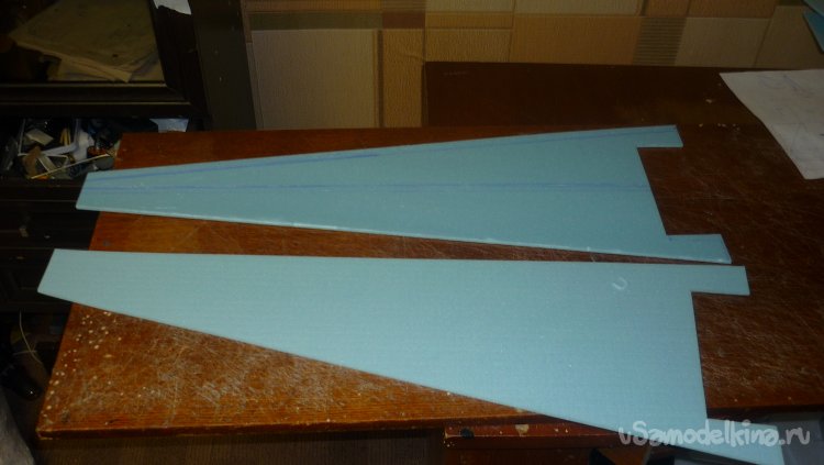Для начала я вырезал две половины горизонтальной, несущей плоскости.