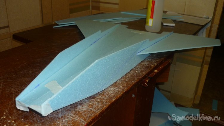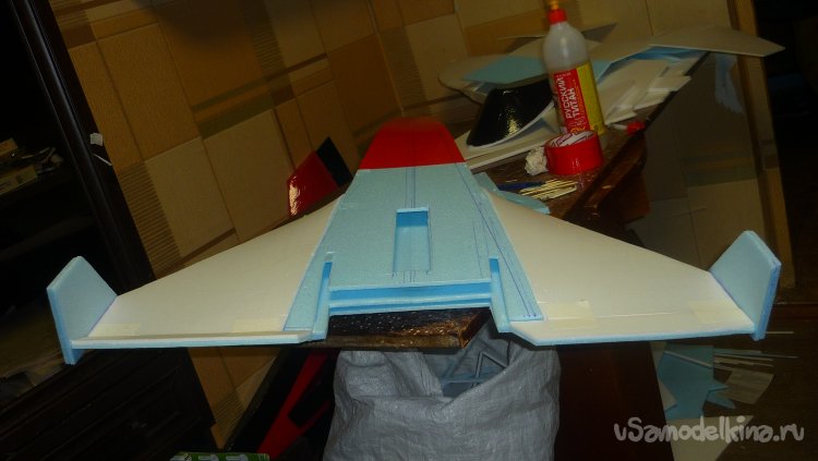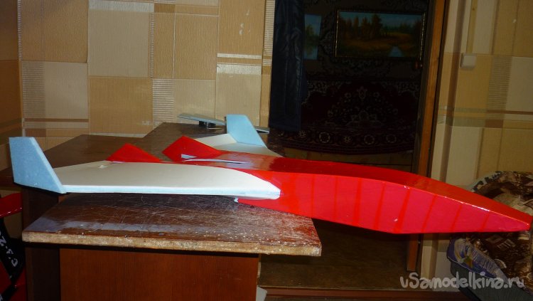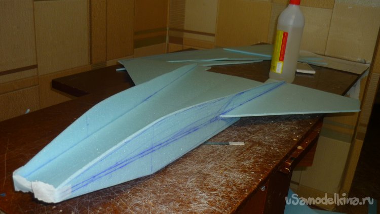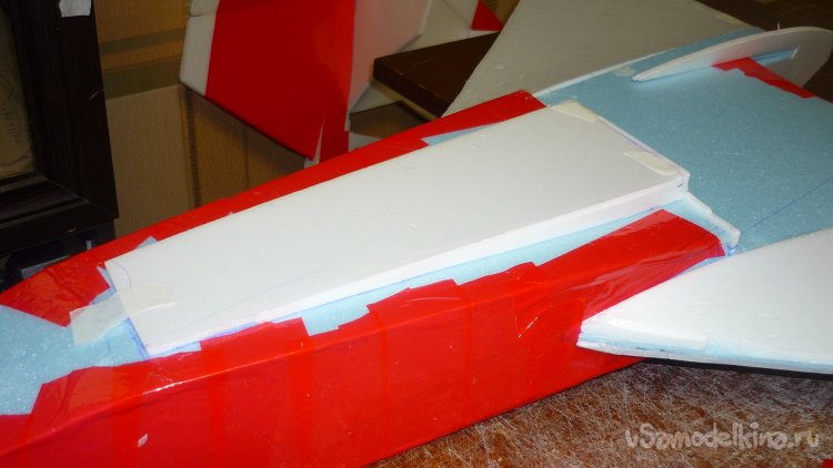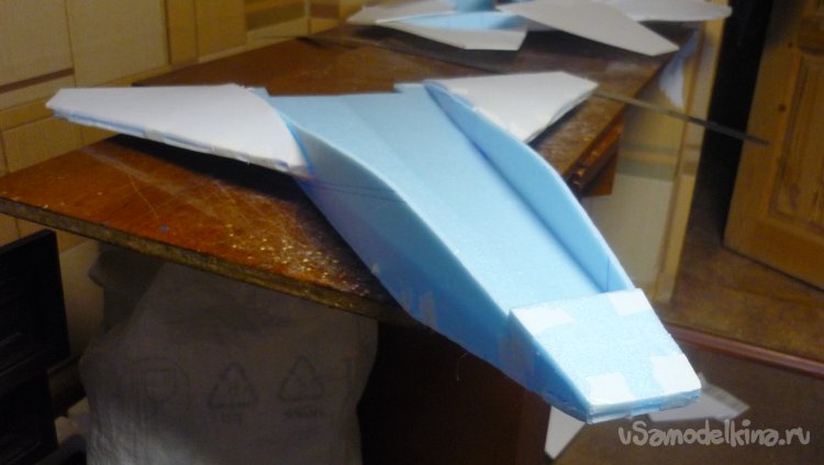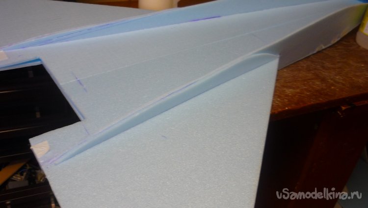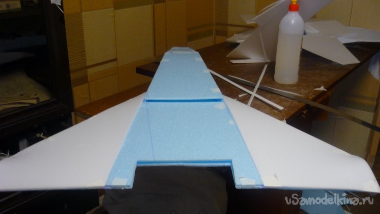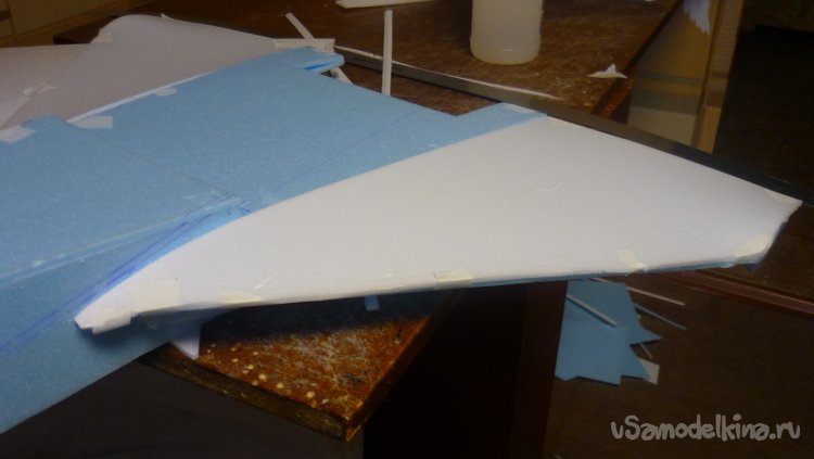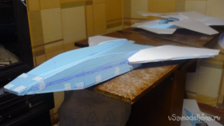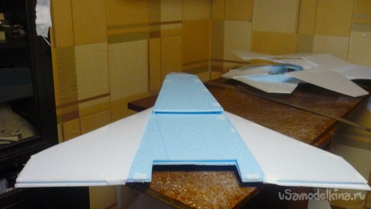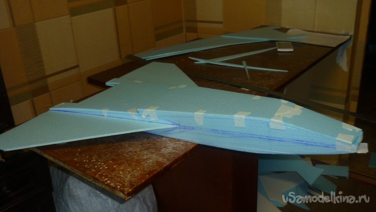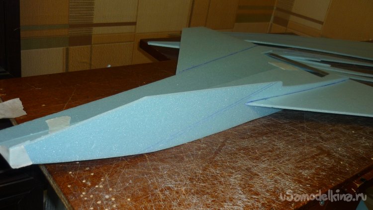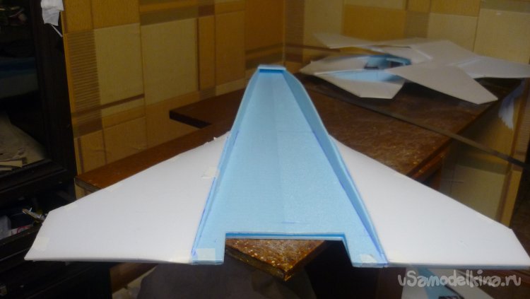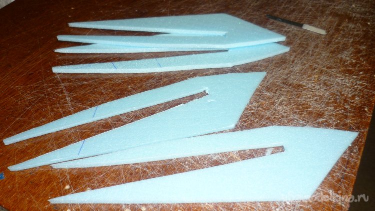 Для начала я вырезал две половины горизонтальной, несущей плоскости.
