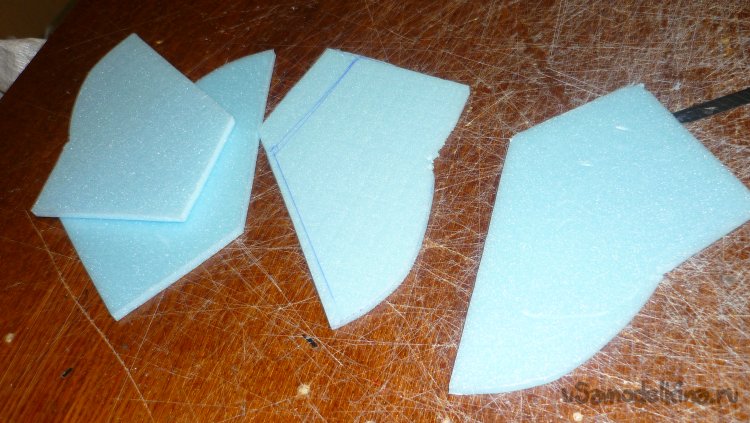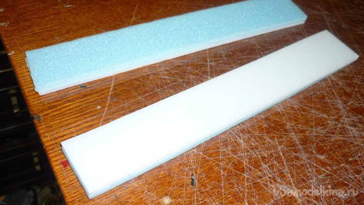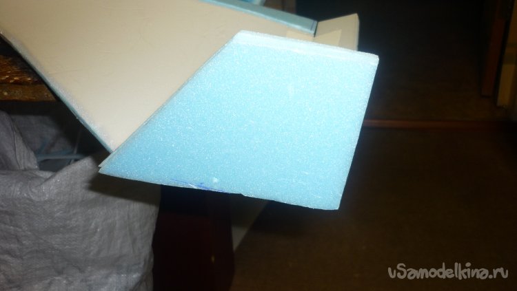 Модель изготавливаю из обычной листовой подложки под ламинат, голубого цвета.