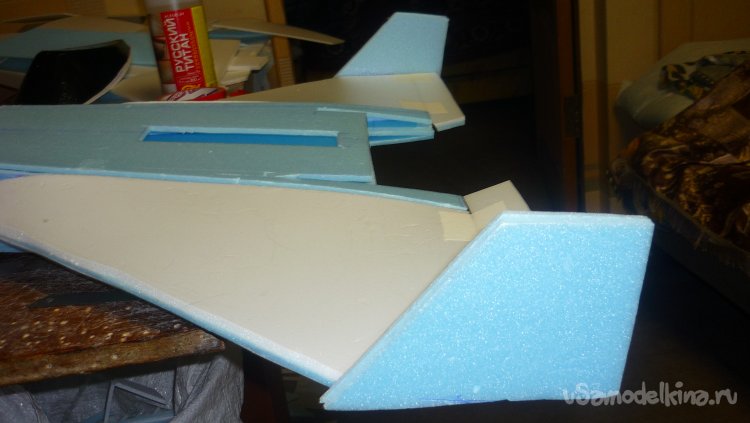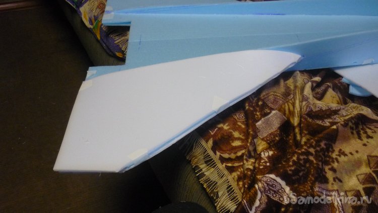В хвостовой части внешней стенки фюзеляжа прорезаю места для установки килей.
