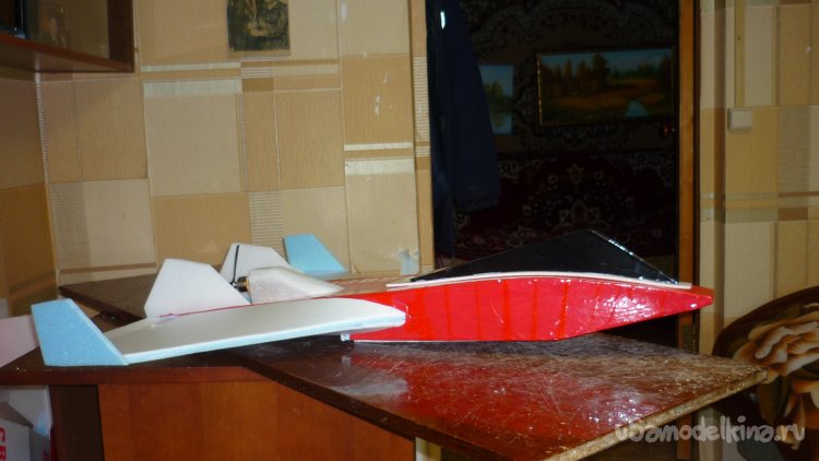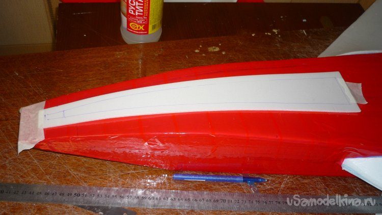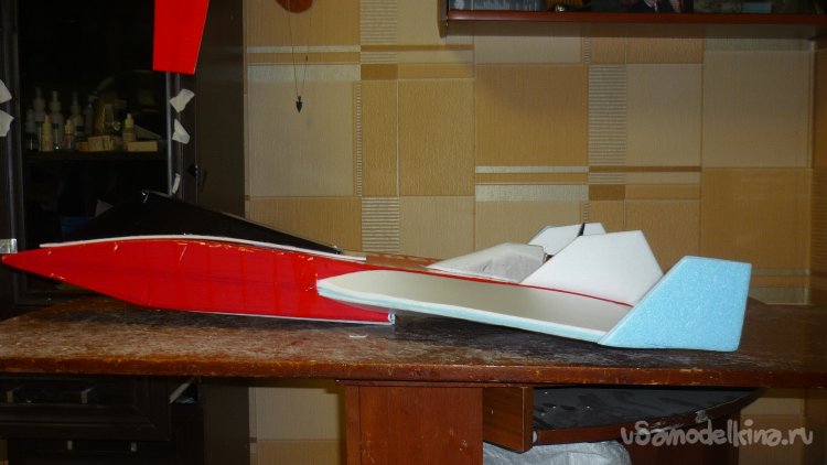 Разрезав нижнюю стенку фюзеляжа по линии редана, вклеил обе части на место.
