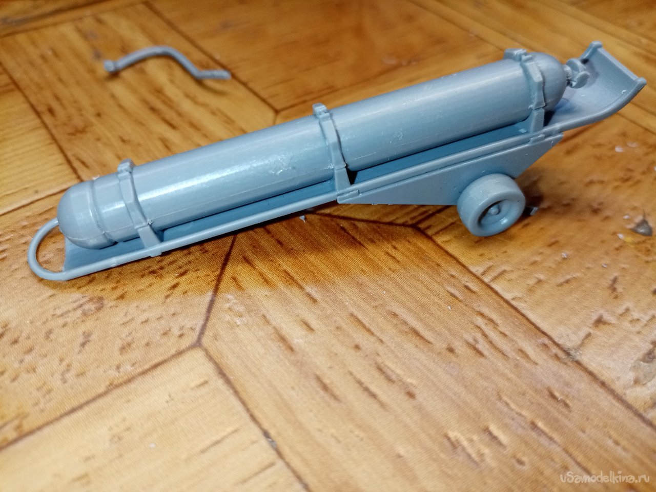 Закрепляю баллон на поддоне и приклеиваю к нему тележку. Шланг приклею потом по месту. Баллон готов.