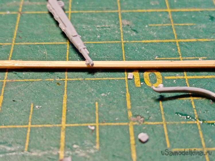 Немного зачищаю все места вклейки утюжком со шкуркой среднего калибра. Нужны ровные плоскости приклейки и немного «лохматушек». Они растворяются клеем для пластика, соединение получается еще прочнее.