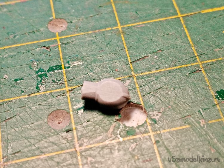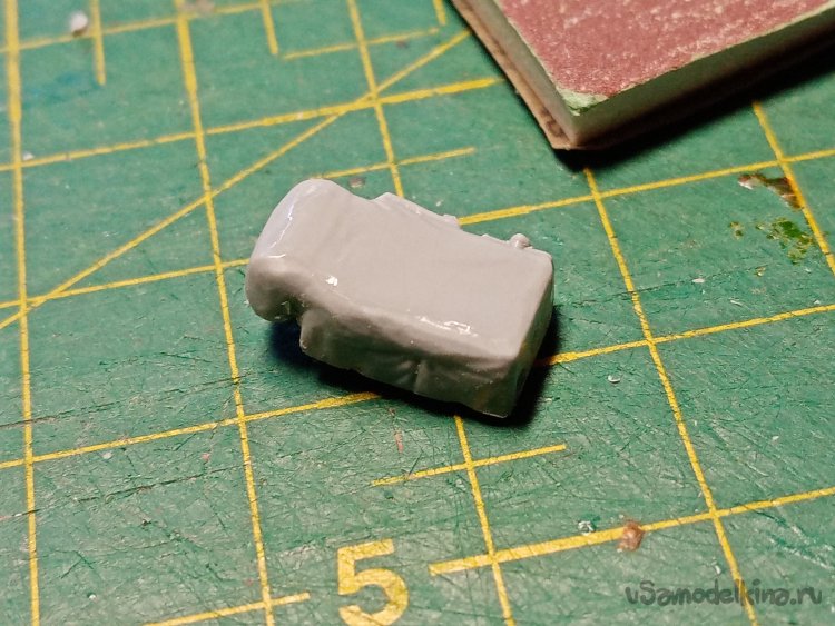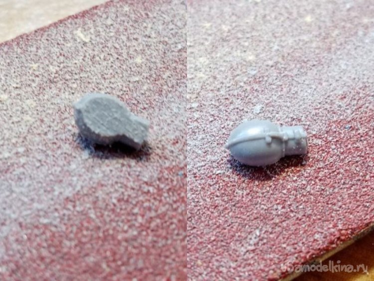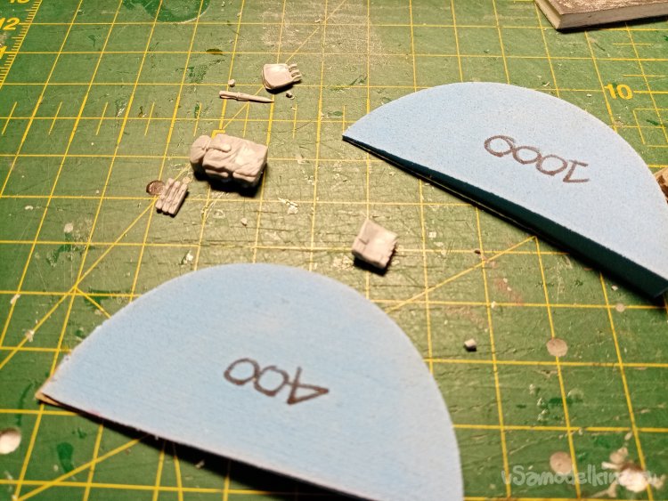 Слегка отвлекся. Подавляю тонкими шкурками, наклеенными на губчатую резину «обвес» фигурки.