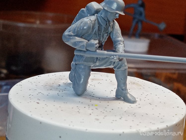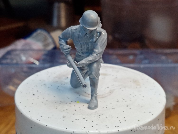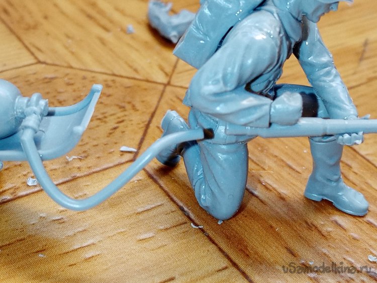 Последняя фигурка, оператор «огненной трубы». Отделяю детали от литника.
