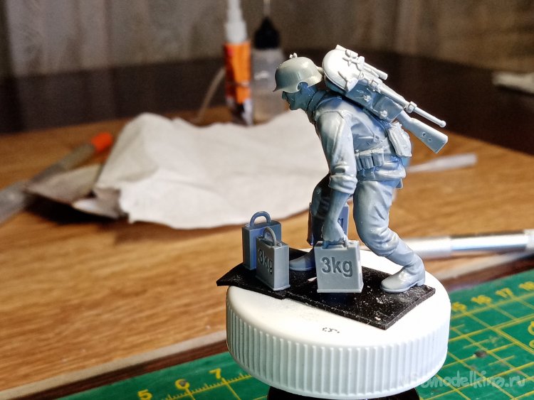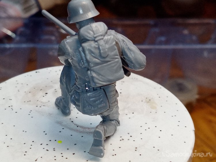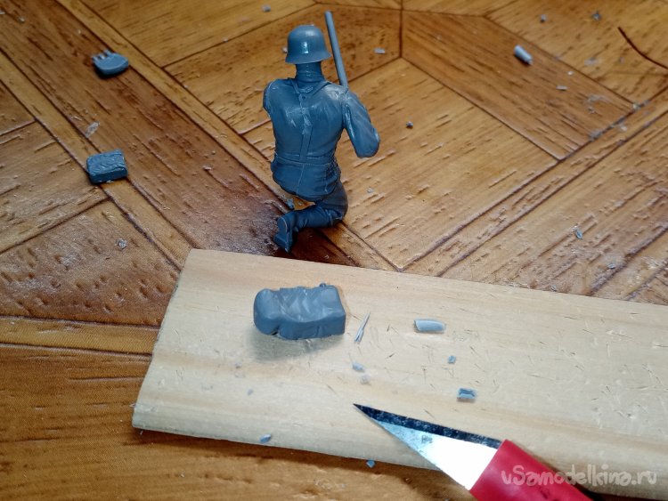 На очереди ранец. Пришлось немного построгать спинку с внутренней стороны и спину солдатика. Чтобы более реалистично прилегал к фигуре.