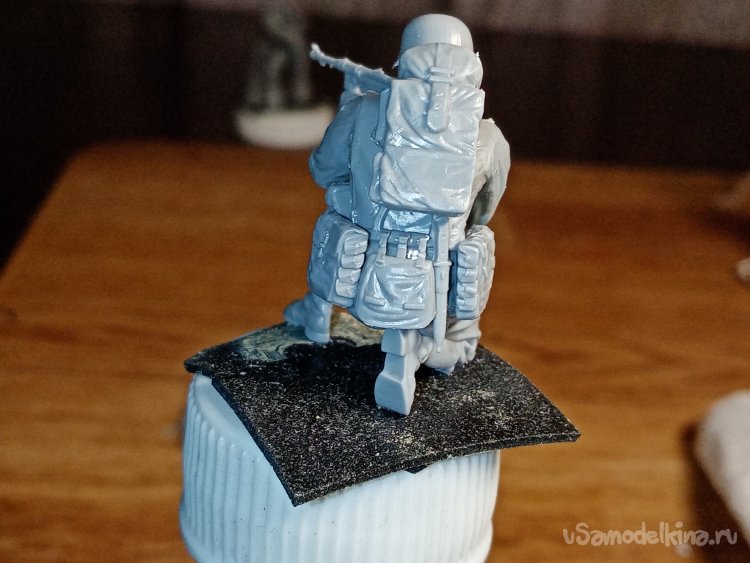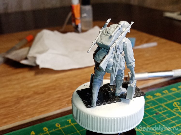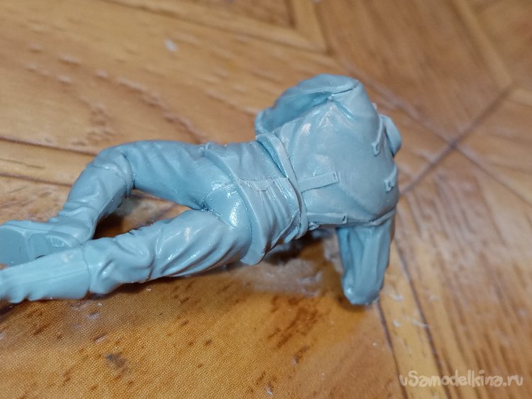 Приходится много строгать пластика не только на ранцах и фляжках, но и на спине и боках фигурки.