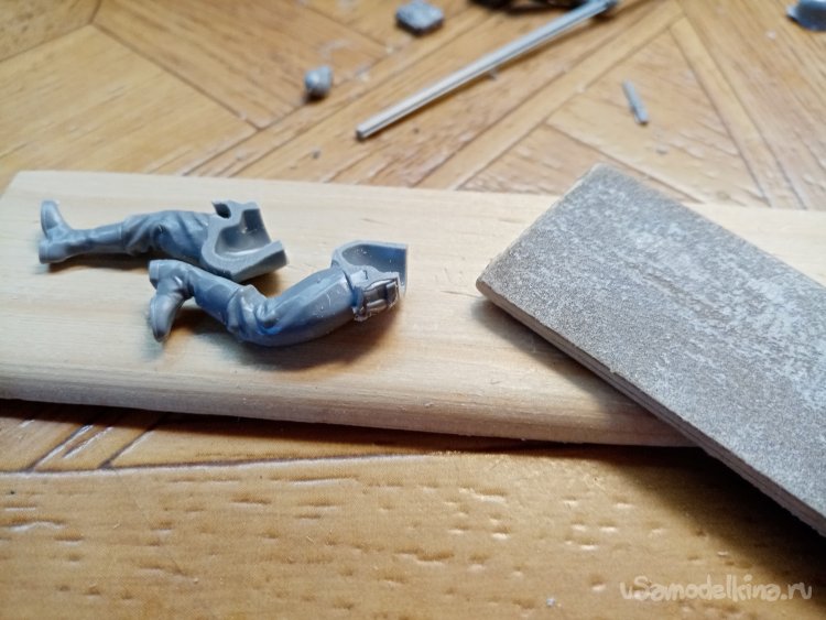 Подгоняю стыки ног и торса при помощи утюжка со шкуркой.