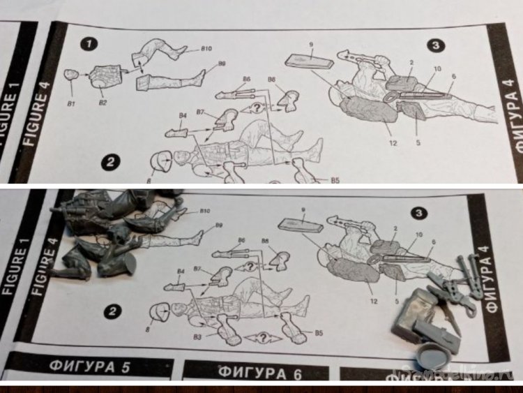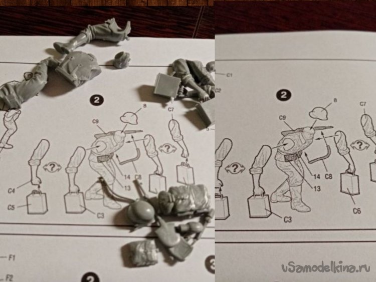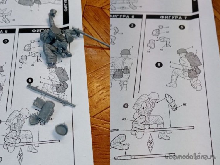 Инструкция довольно подробная. Качество литья просто хорошее. Проработаны мелкие детали, руки, лица. Головы разные, с разным выражением на лице. Очевидно совсем новые литьевые формы. Не успели еще затереться.