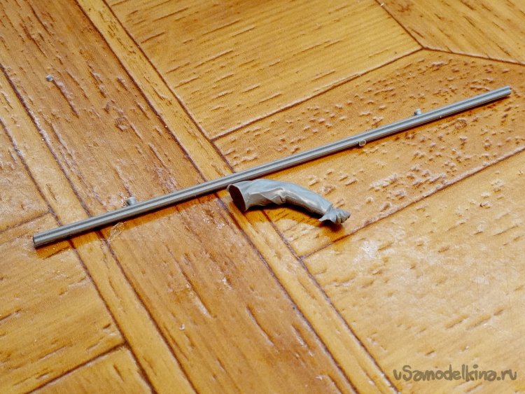 Винтовка, деталь отлита хорошо. Немного поправлю ножом. В стволе провертел отверстие, для реализма. Но ремень винтовки приделать сложно.