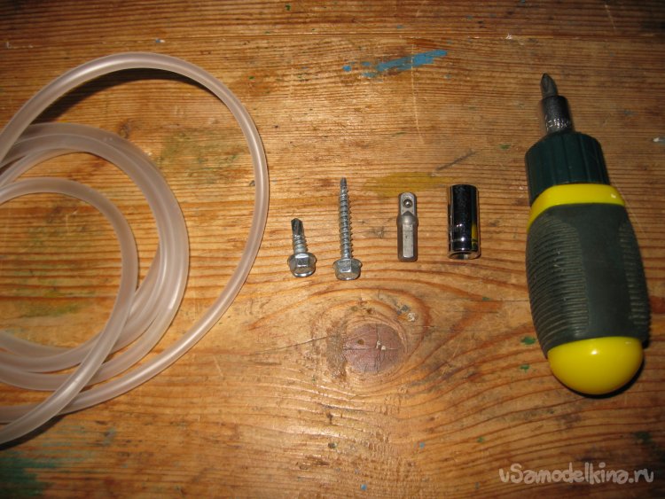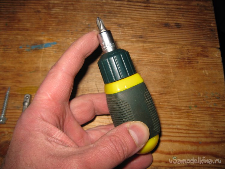 Кроме того, это торцевая головка на 8 мм, и несколько кровельных саморезов.