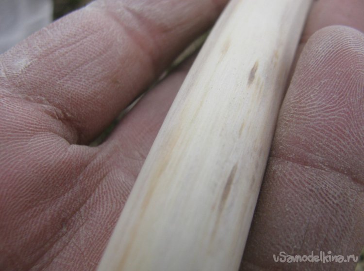 После сушки вес лука составил 100 грамм, возможно при более длительной сушке он станет еще легче. Приступаем к шлифовке наждачной бумагой, древесина становится очень гладкой и уже напоминает кость.