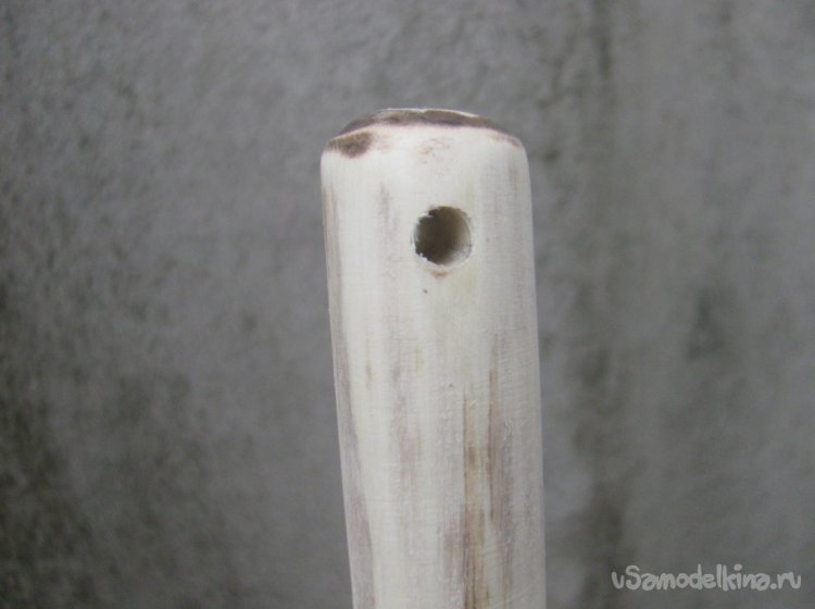 На концах просверлил отверстия для более простой натяжки тетивы. В моем юношеском варианте были «рогачики» в торцах, а на концах лука были канавки для намотки веревки, но это конструкция не практичная.