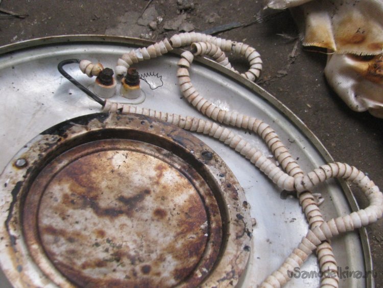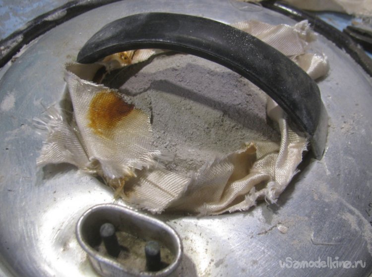 Начал поиски нужной мне спирали, нашел верхнюю часть от древней мини-духовки, там спираль мощность 600Вт, маловато, но попробуем. Также внутри нашлась ценная жаростойкая тряпка.