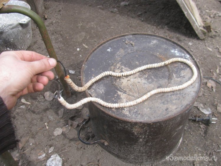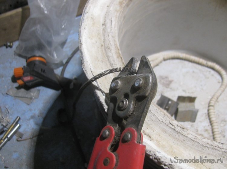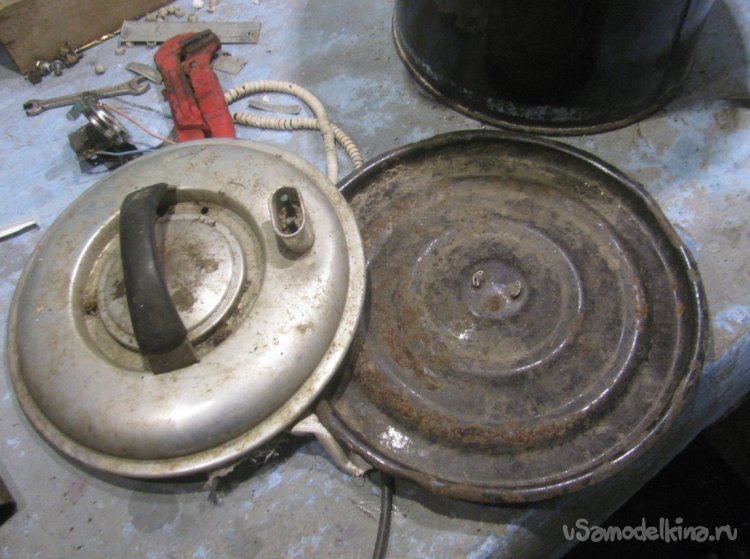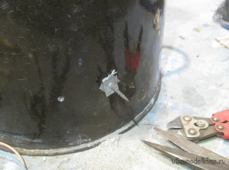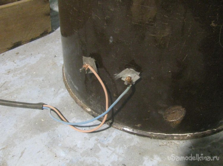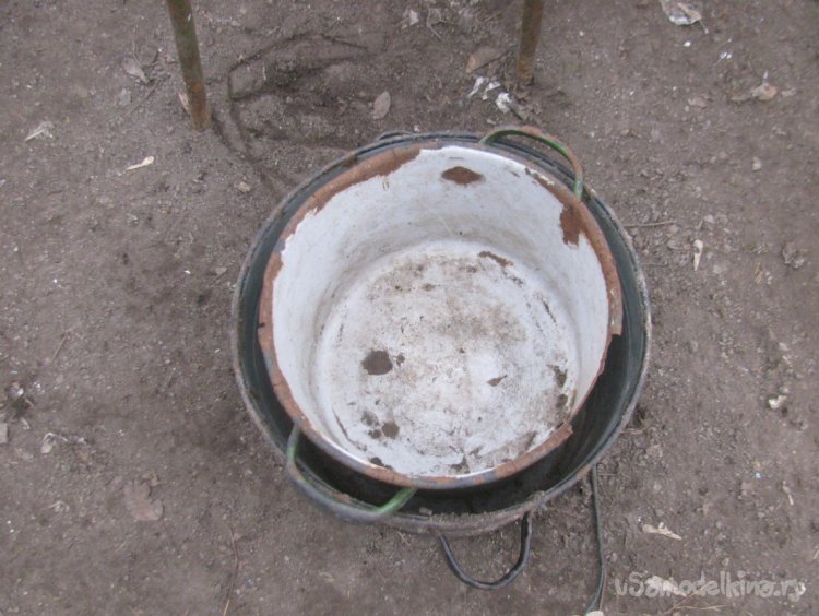Сквозь кастрюли просверлил отверстия, винтов такой длины у меня нет, так что использовал саморезы и жестянки в качестве гаек. Саморезы обмотал стеклотканью, а с обеих сторон надеваются керамические изолятор. Работает без проблем.