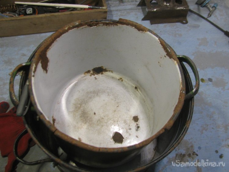 Также подобную печь можно калить и газовой/бензиновой горелкой, эмаль кастрюль может раскаляться докрасна и держит высокие температуры. На этом все, удачи и творческих вдохновений!