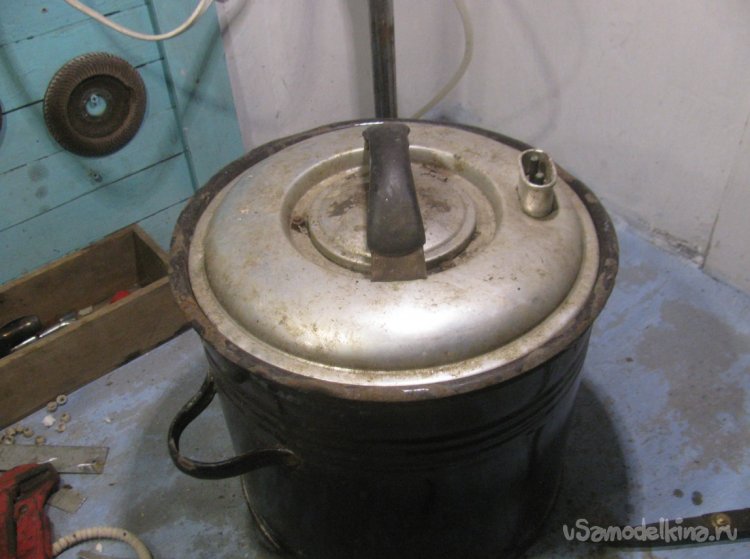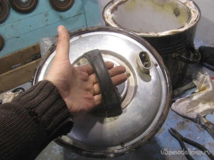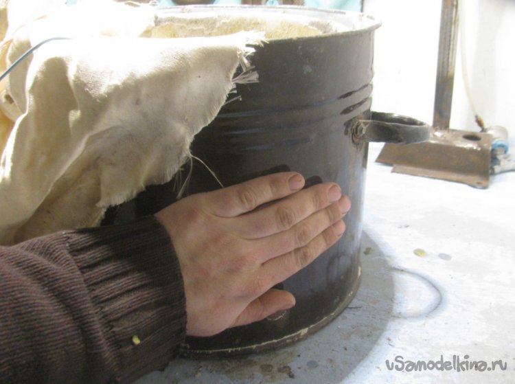 Нашел две кастрюли, чтобы одна заходила в другую, и было место под утеплитель. В качестве утеплителя я так думал, у меня есть перлит. Набил я этого дела, но на 200С пошла сильная вонь, даже глаза невозможно было раскрыть в этом ужасе. Так что это оказался не перлит, а что, я не знаю. Все выкинул и почистил кастрюли.