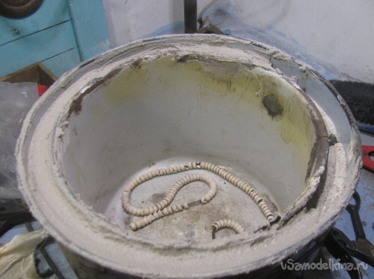 Включил нагреватель, многие керамические детали полопались. Пробовал плавно просушивать, все равно отпали, видимо время сделали свое дело и что должно отпасть, отпало.