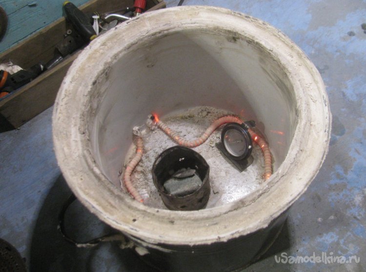 На этом этапе печь пока готова, можно проводить разные опыты со стеклом и не только, к примеру, плавить пластик.