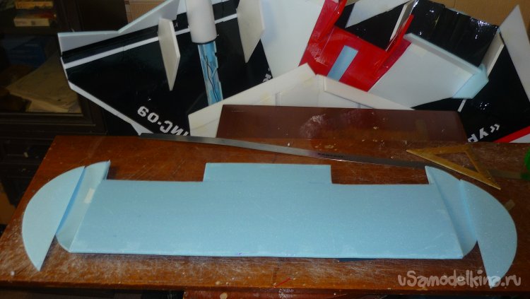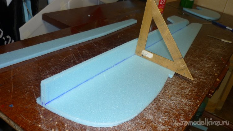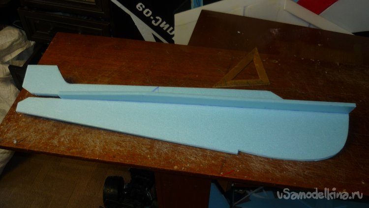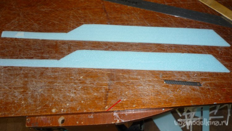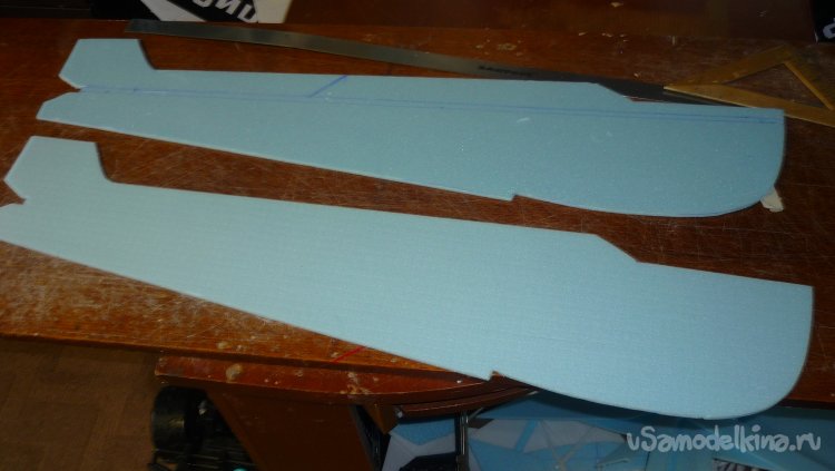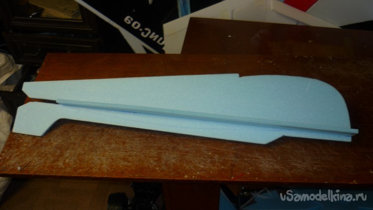 Склеил два слоя заготовок стабилизатора и отрезал руль высоты.