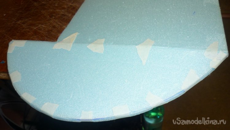 Начинаю локальную обтяжку модели цветным скотчем. Монтирую сервомашинки.