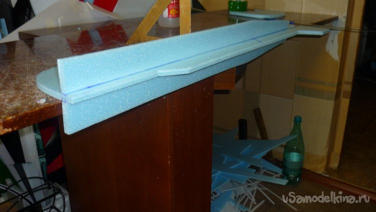 Смонтировал верхнюю и нижнюю плоскости крыльев. Вырезал элероны.