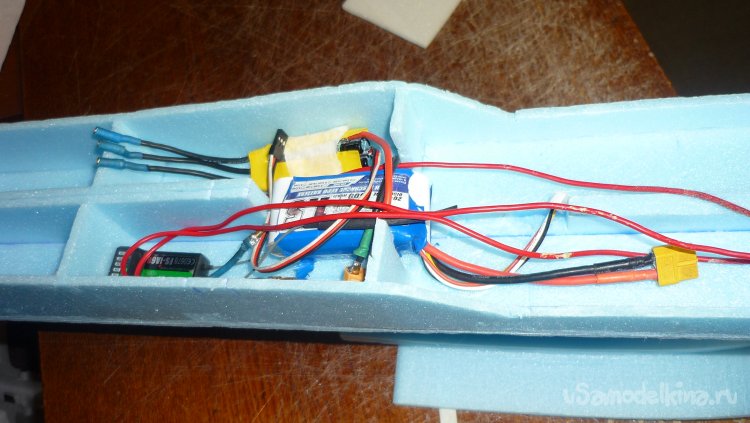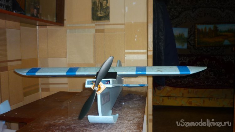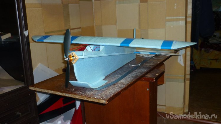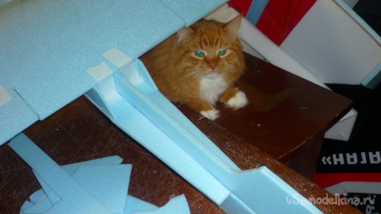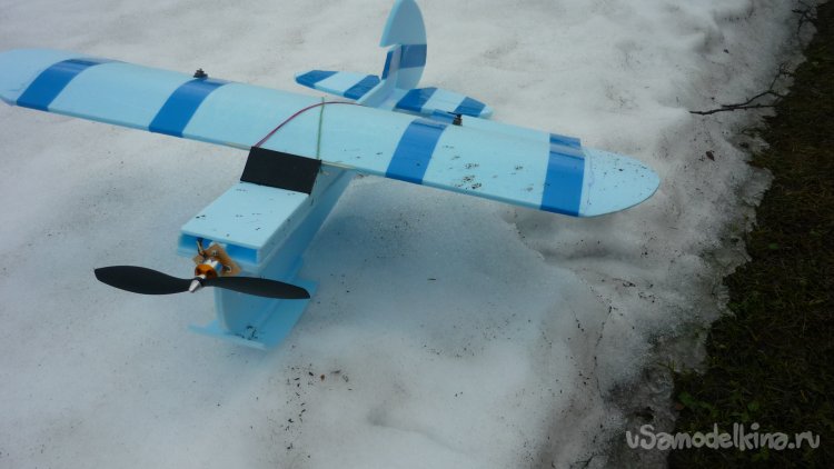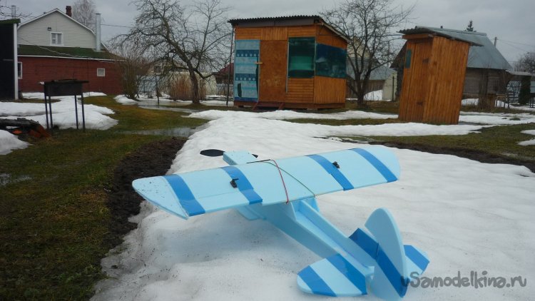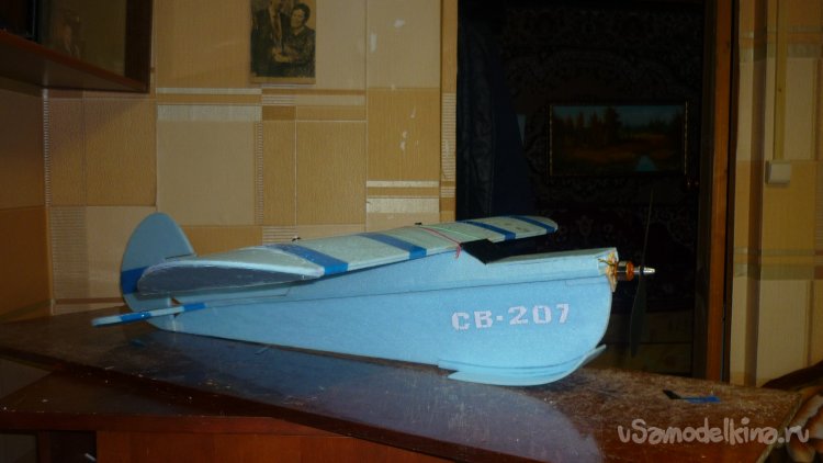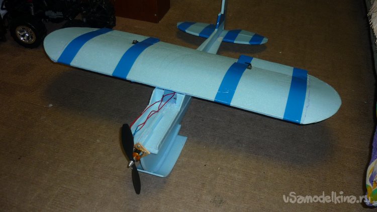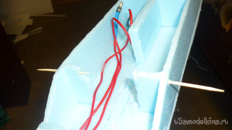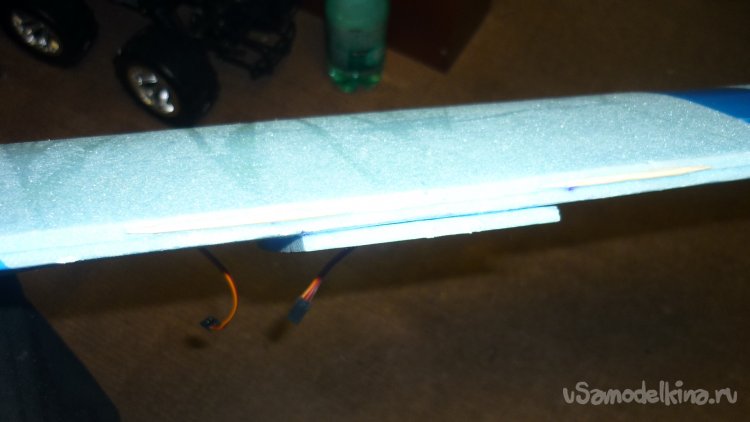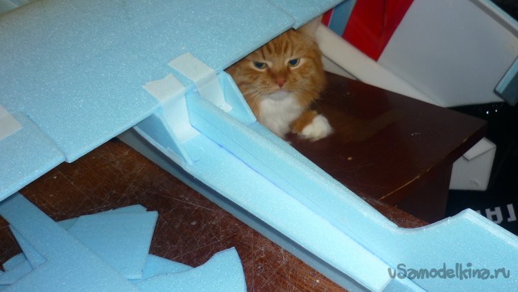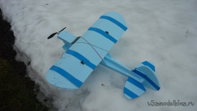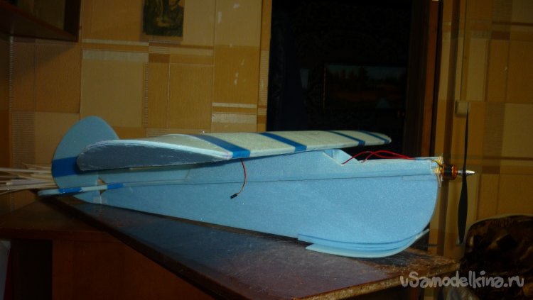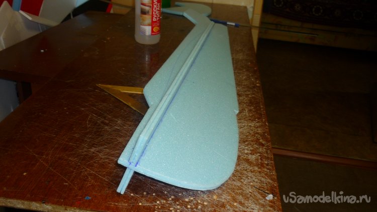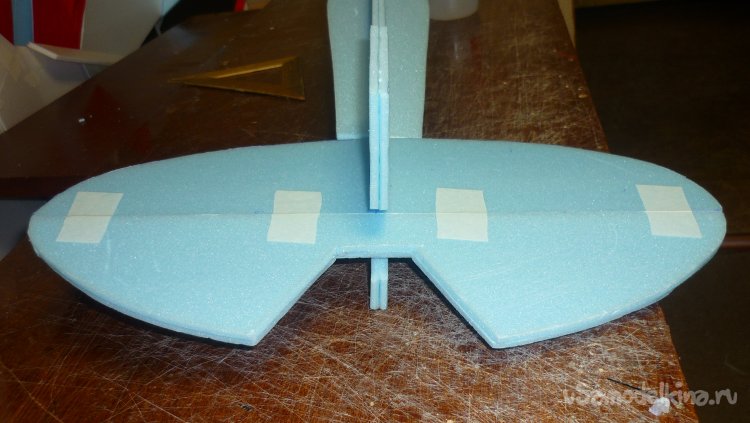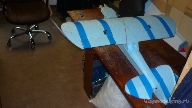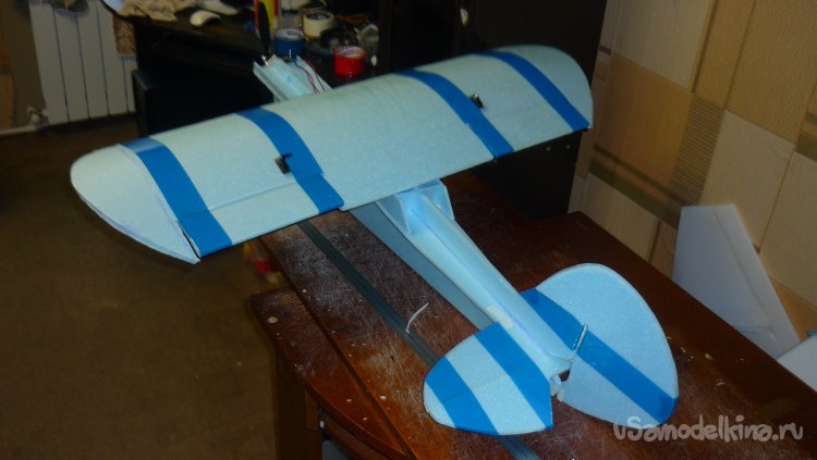На крылья , в местах крепления резинками, вклеил зубочистки, что бы не повредить обшивку крыльев.