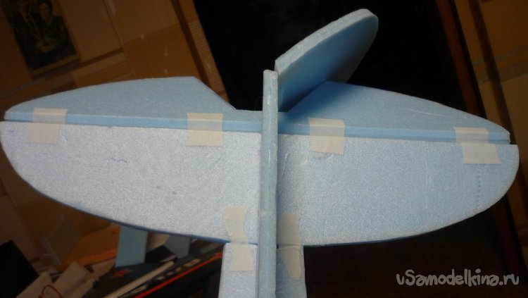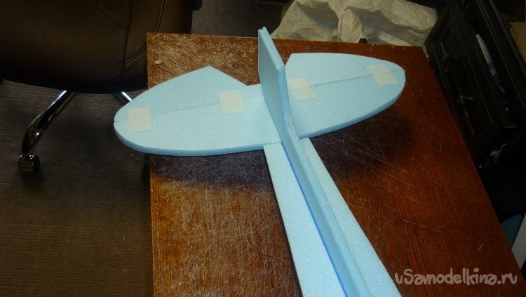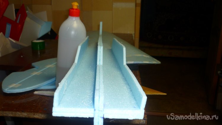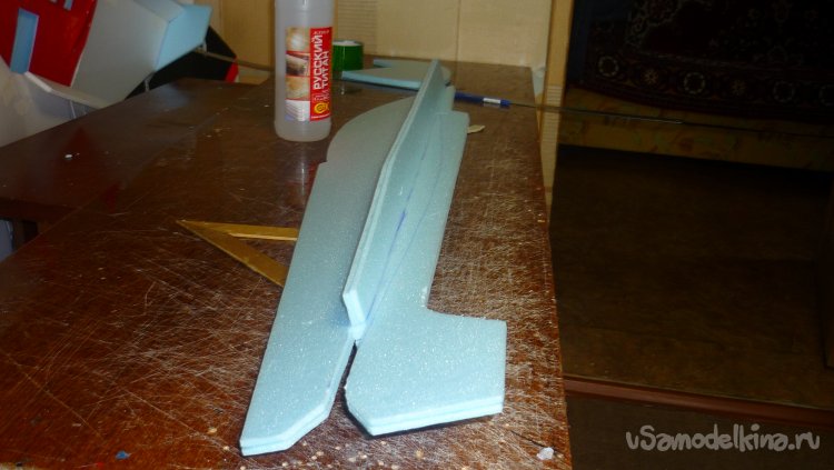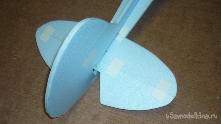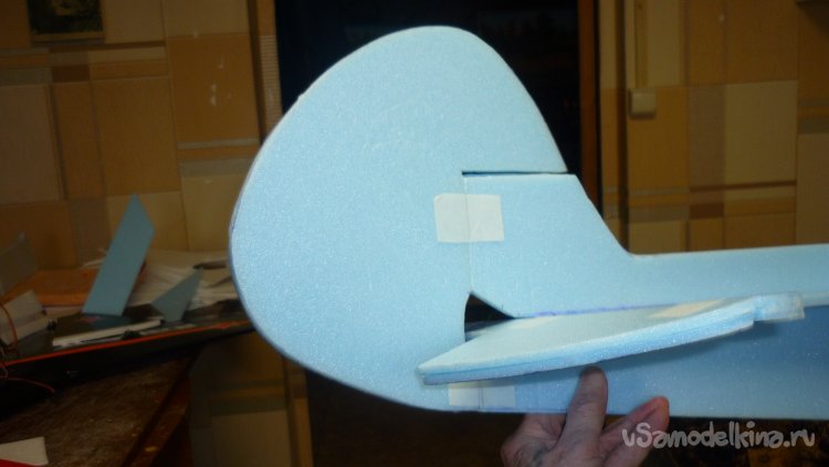 Примеряю и вклеиваю стабилизатор с рулём высоты.
