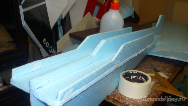 Вклеиваю заготовки в носовой части фюзеляжа, на которые будут крепиться крылья.
