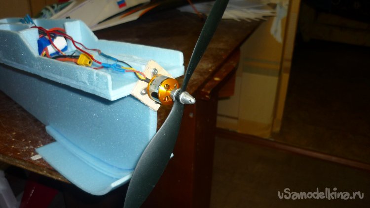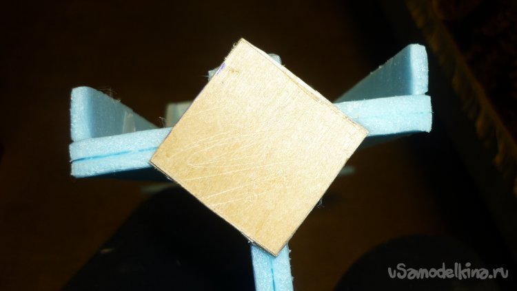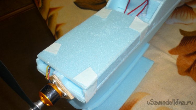 В носовой части фюзеляжа вклеиваю кусочек 3 мм. фанеры, для установки мотора с винтом.
