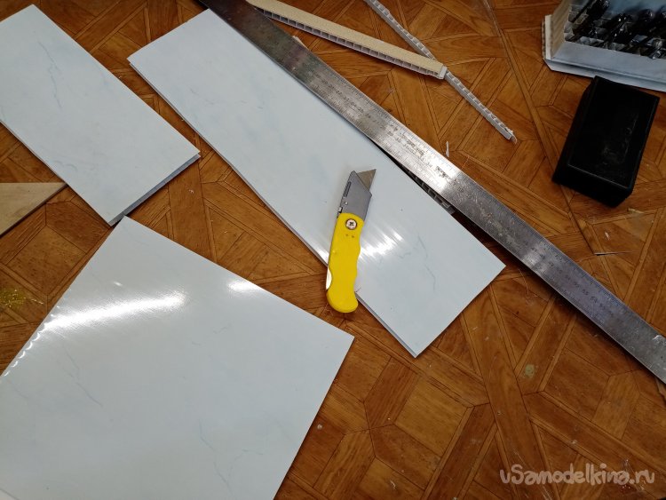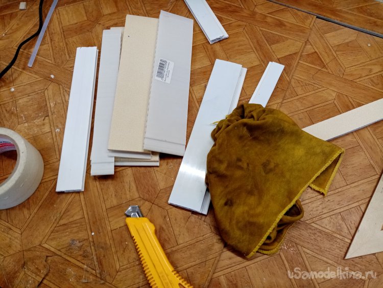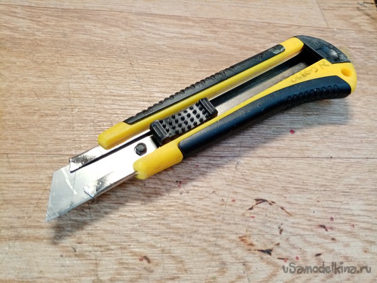 Канцелярский нож не справился с резкой достаточно прочного пластика. Лезвие гнется и норовит сломаться. Поэтому перехожу к более прочному варианту. Складной нож.