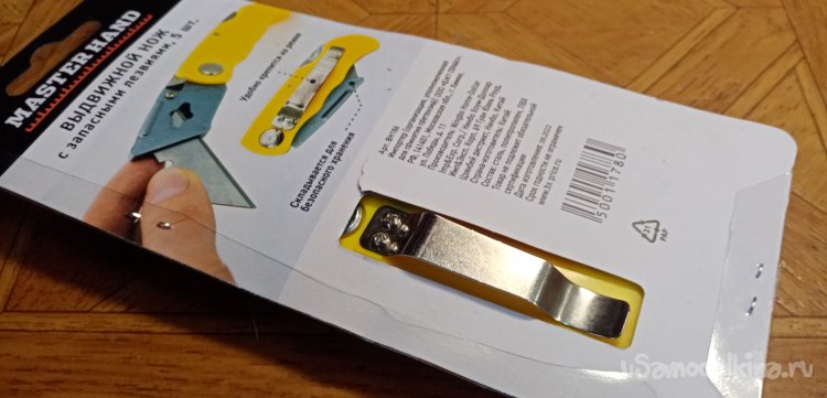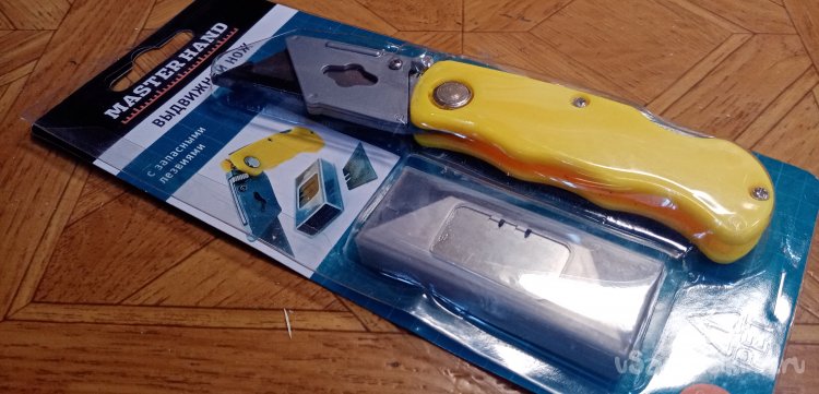 Небольшой, складной нож из магазина «Фикспрайс». С более мощным лезвием, где нужно будет резать с усилием.