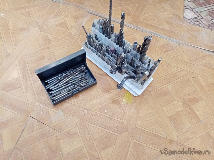Есть в наличии значительное количество новых сверл и старая уставшая подставка. Поэтому нужно изготовить новую, с большим количеством мест.