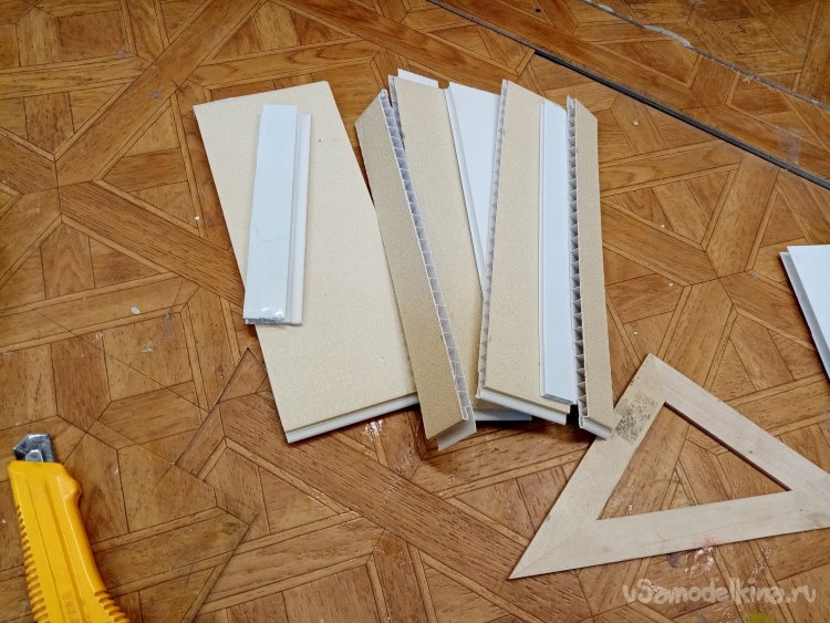 При разрезе в структуре материала присутствуют полости, которые можно использовать для установки сверл небольшого диаметра. Достались обрезки панелей из них буду кроить будущую подставку. Выбираю более красивую.