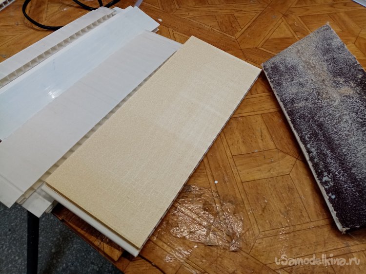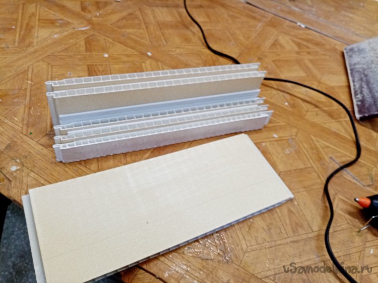 Спустя некоторое время пачка резанных стенных панелей склеена в блок.