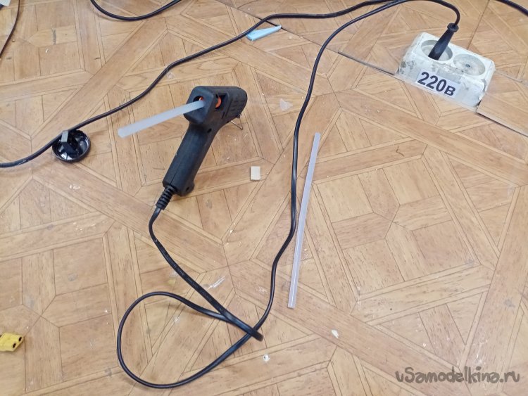 Скреплять все элементы пригодится небольшой черный термопистолет.