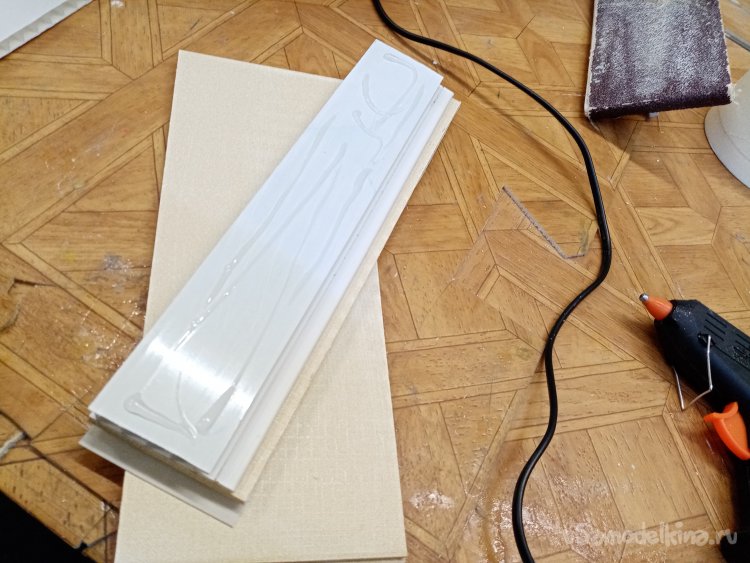Для лучшей адгезии клея все заготовки пошаркал немного крупной шкуркой.