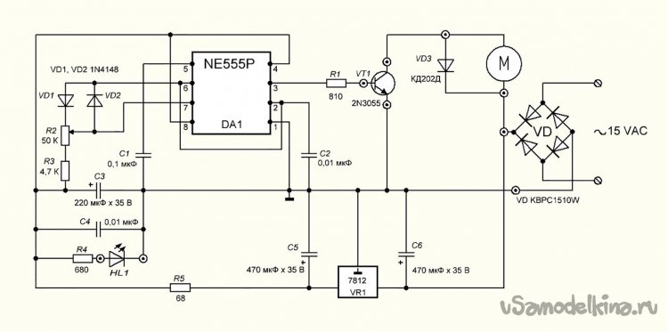 ШИМ-регулятор оборотов на таймере NE555 для сверлильного станочка