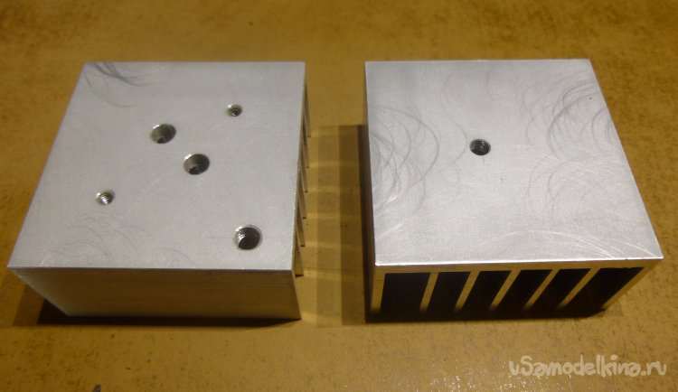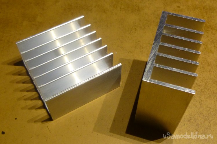 В загашнике было два ребристых радиатора размерами 50х50х27 мм. На одном будет крепиться выходной транзистор, на другом — диодный мост.