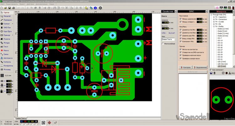 В программе Sprint-Layout 6.0 нарисовал плату и развёл дорожки.