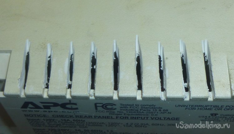 Бормашиной с толстым отрезным диском пропилил решётки насквозь сверху и с боковин корпуса.