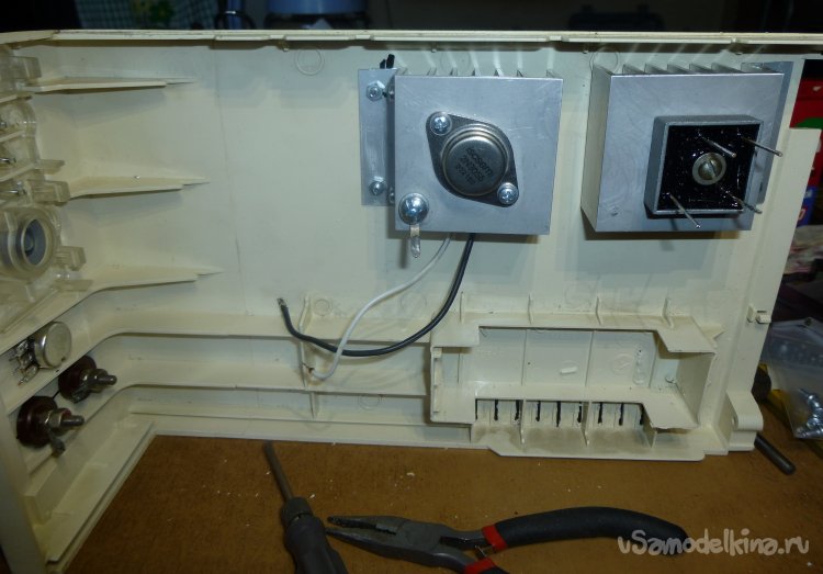 В заднем отсеке закрепил на уголках радиаторы с диодным мостом и выходным транзистором.
